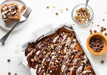 Mix flour, baking powder, sugar, salt, cinnamon, applesauce, and hazelnut syrup, if using. -